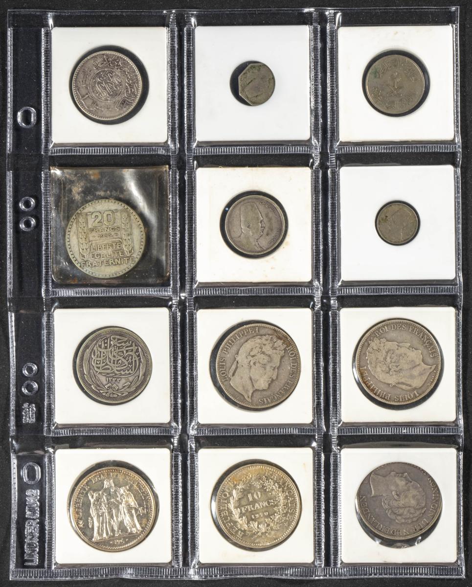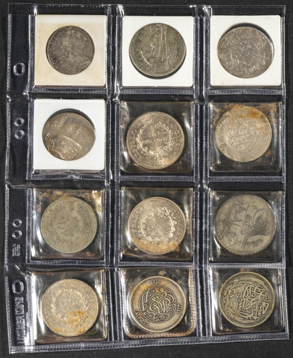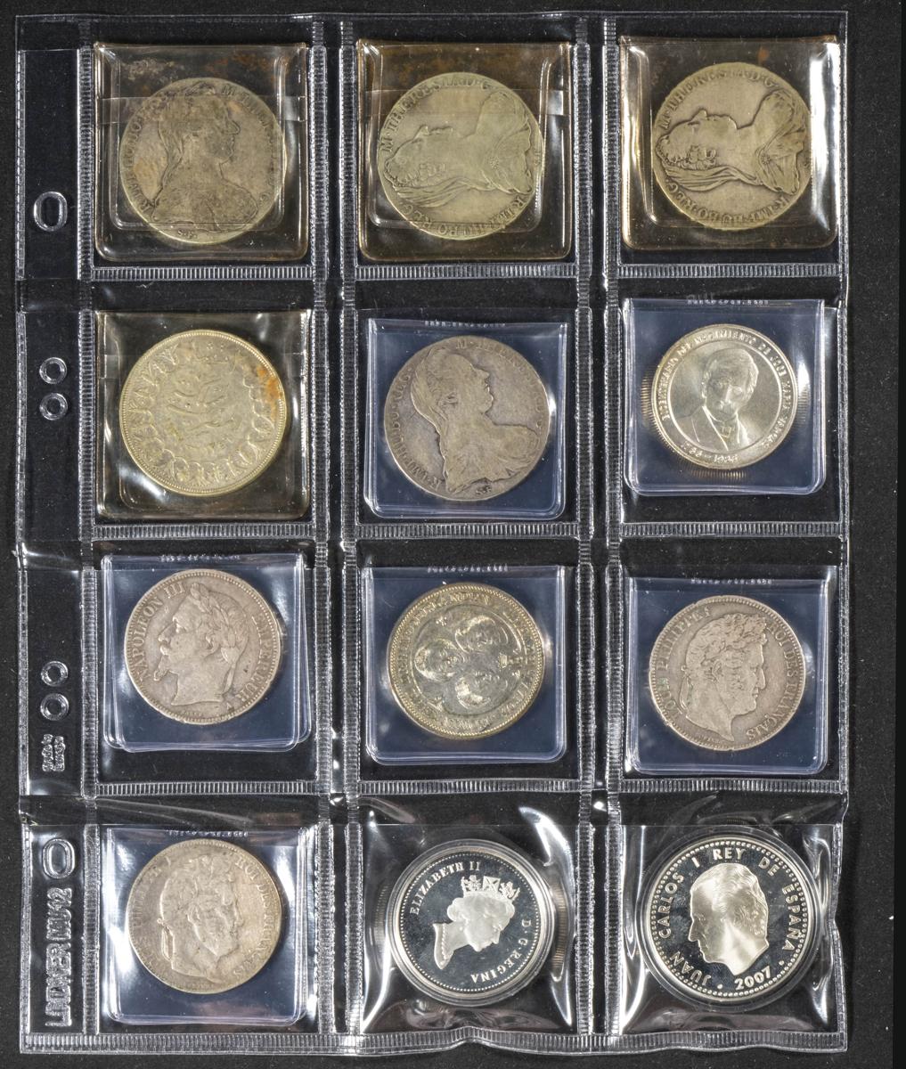 Interesante conjunto de 62 monedas de plata de distintas épocas, módulos y países, incluye alguna reproducción. A EXAMINAR.