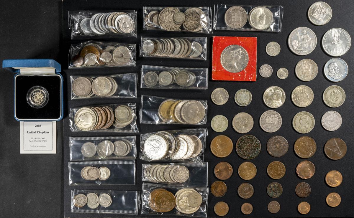 MONEDAS EXTRANJERAS. Interesante resto de colección formado por aproximadamente 200 monedas extranjeras de diferentes siglos (S. XVIII al XX), con una gran variedad de países, fechas, módulos y materiales representados, incluyendo la plata y algunas piezas de carácter conmemorativo. Diferentes estados de conservación. A EXAMINAR.