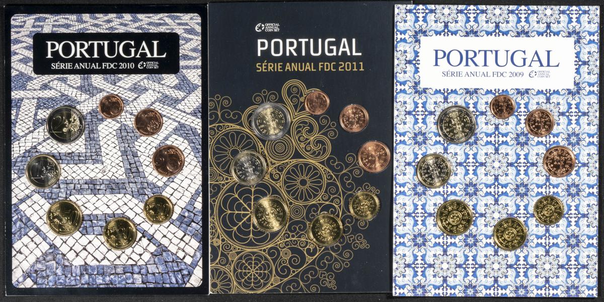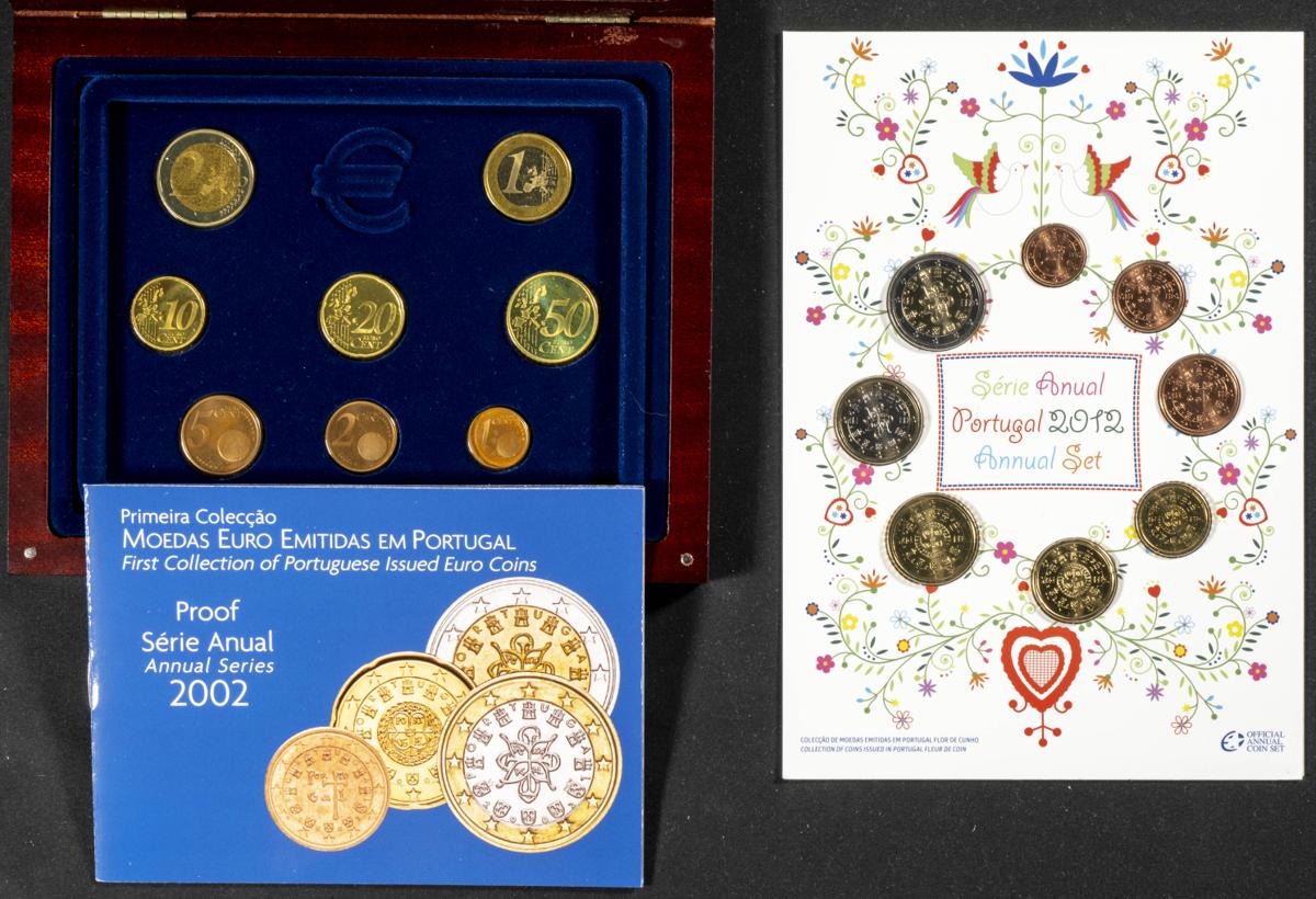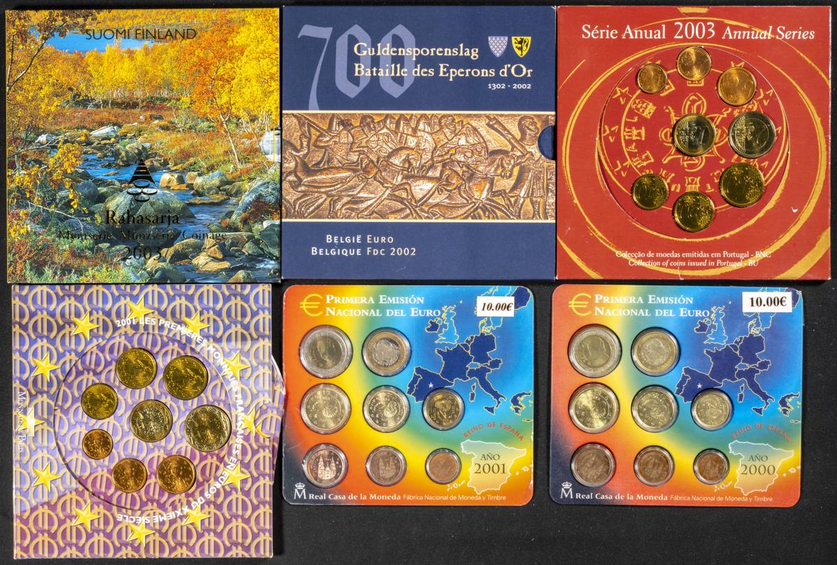 EUROS. Conjunto de 11 carteras o estuches oficiales de diferentes países (destacando por número Portugal) y fechas sin ningún ejemplar repetido. Magnífico estado de conservación general. A EXAMINAR.