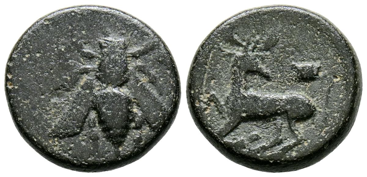 JONIA, Efeso. Ae13. (Ae. 2,12g/13mm). 390-300 a.C. (BMC 58-66). Anv: Abeja entre E y O. Rev: Ciervo estante a izquierda mirando a derecha. MBC-.