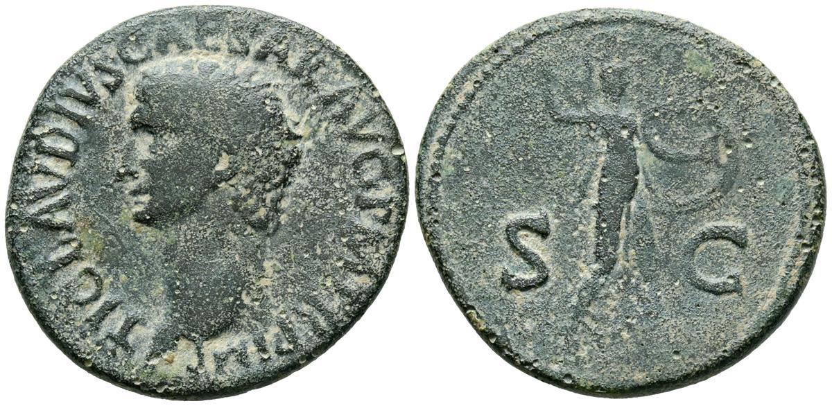 CLAUDIO I. As. (Ae. 9,34g/28mm). 41-50 d.C. Roma. (RIC 100). Anv: Cabeza de Claudio I a izquierda, alrededor leyenda: TI CLAVDIVS CAESAR AVG P M TR P IMP. Rev: Minerva avanzando a derecha portando lanza y escudo, entre S-C. MBC-.