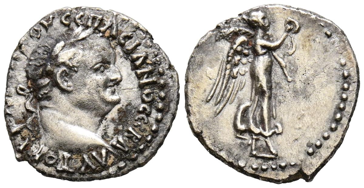 VESPASIANO. Hemidracma. (Ar. 1,71g/14mm). 69-79 d.C. Capadocia, Caesarea-Eusebia. (RPC 1659). Anv: Cabeza laureada de Vespasiano a derecha, alrededor leyenda. Rev: Victoria avanzando a derecha con corona de laurel. MBC+.