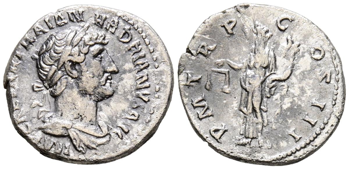 ADRIANO. Denario. (Ar. 3,08g/18mm). 119-123 d.C. Roma. (RIC 80). Anv: Busto laureado, drapeado y con coraza de Adriano a derecha, alrededor leyenda: IMP CAESAR TRAIAN HADRIANVS AVG. Rev: Aequitas estante a izquierda portando escalas y cornucopia, alrededor leyenda: P M TR P COS III. MBC-.