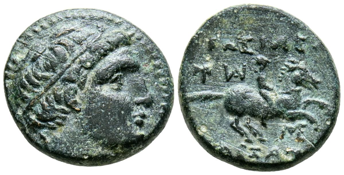 REYES DE MACEDONIA, Filipo III Arrhidaios. Ae17. (Ae. 4,42g/17mm). 323-319 a.C. Miletos. (Price 2131). Anv: Cabeza laureada masculina a derecha. Rev: Jóven a caballo a derecha, alrededor leyenda griega. MBC.