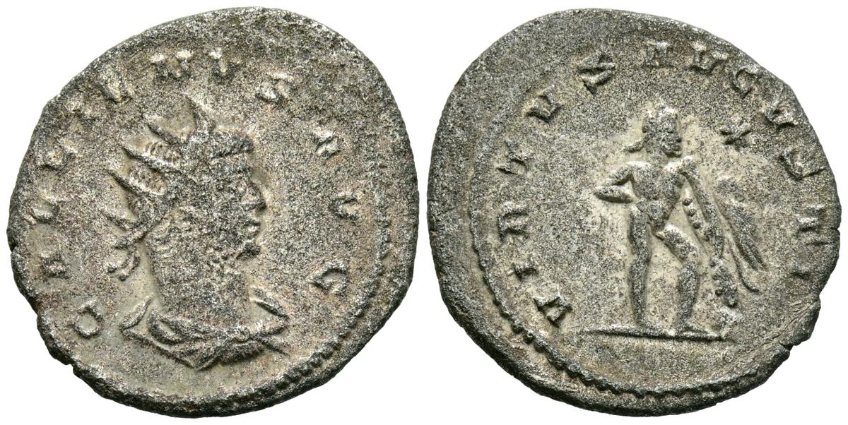 GALIENO. Antoniniano. (Ve. 3,33g/22mm). 260-268 d.C. Antioquía. (RIC 672). Anv: Busto radiado y drapeado de Galieno a derecha, alrededor leyenda: GALLIENVS P F AVG. Rev: Hercules estante a derecha apyado sobre mazo, en campo estrella, alrededor leyenda: VIRTVS AVGVSTI. MBC-.