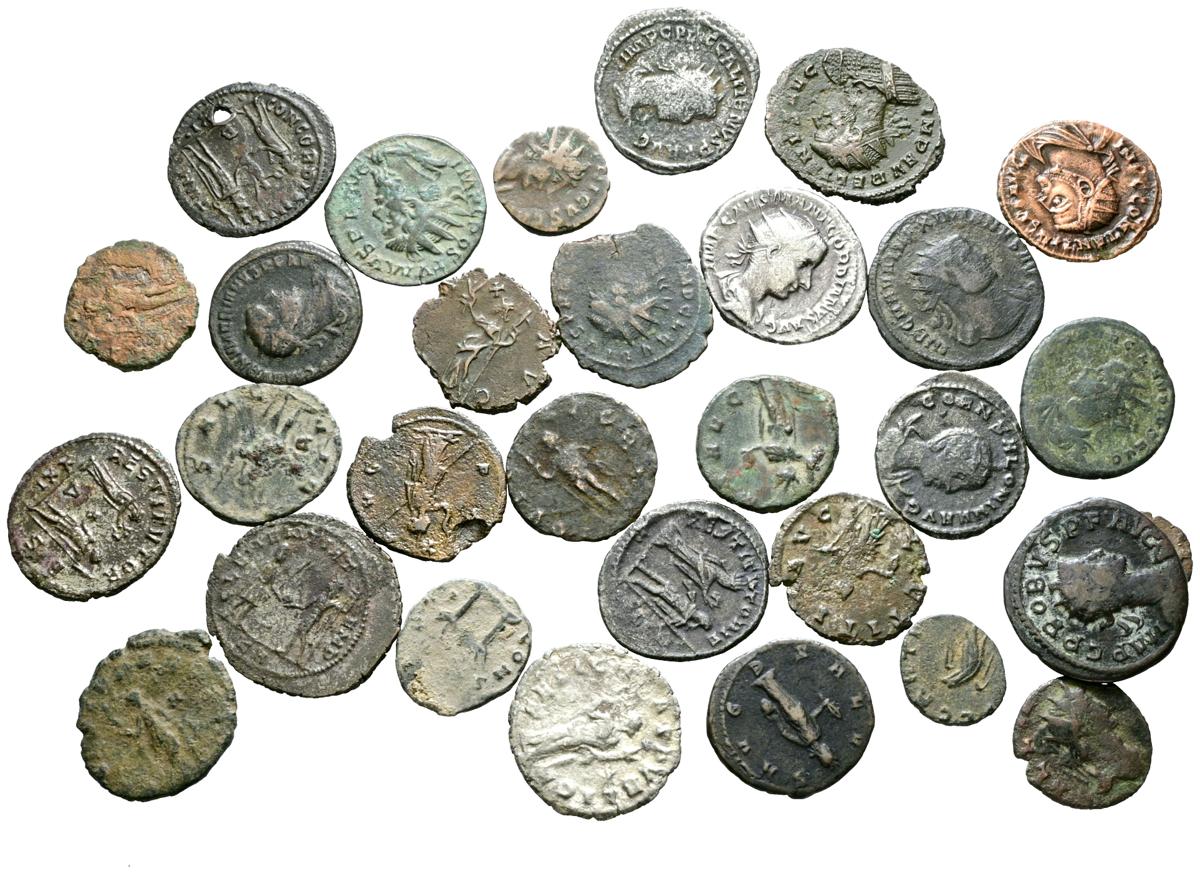 Interesante conjunto de 30 Antoninianos de distintos emperadores, alguno de ellos con plateado original. A EXAMINAR.