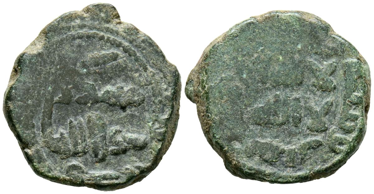 PERIODO GOBERNADORES OMEYAS, Anónimo. Felus. (Ae. 8,98g/22mm). 108H. Al-Andalus. (Frochoso XIX-e). MBC.