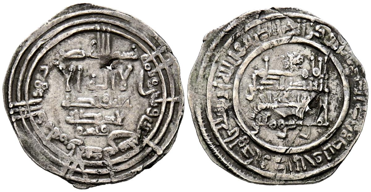 CALIFATO DE CÓRDOBA, Abd al-Rahman III. Dirham. (Ar. 2,80g/24mm). 331H. Al-Ándalus. (Vives 397; R. Frochoso1996-331.10). Citando a Qasim en IA. MBC. Fractura con hueco pequeño.