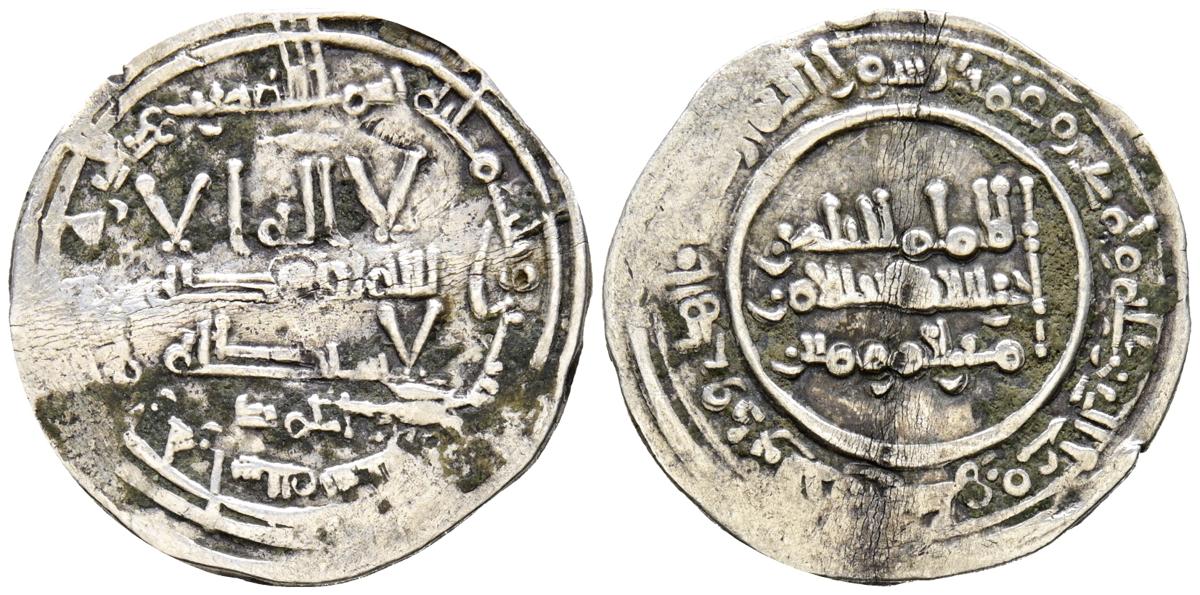 CALIFATO DE CORDOBA, Abd al- Rahman III al-Nasir. Dirham. (Ar. 2,85g/23mm). 347H. Madinat al-Zahra. (Vives 441). Citando a Ahmad en IA. MBC. Doblez enderezada.