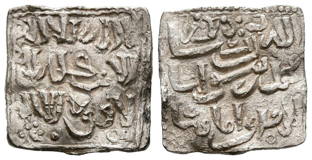 ALMOHADES, Anónimo en nombre de al-Mahdi. Dirham. (Ar. 1,42g/15mm). Sin nombre de ceca, con simbolos. (Vives 2088; Hazard 1101). MBC+.