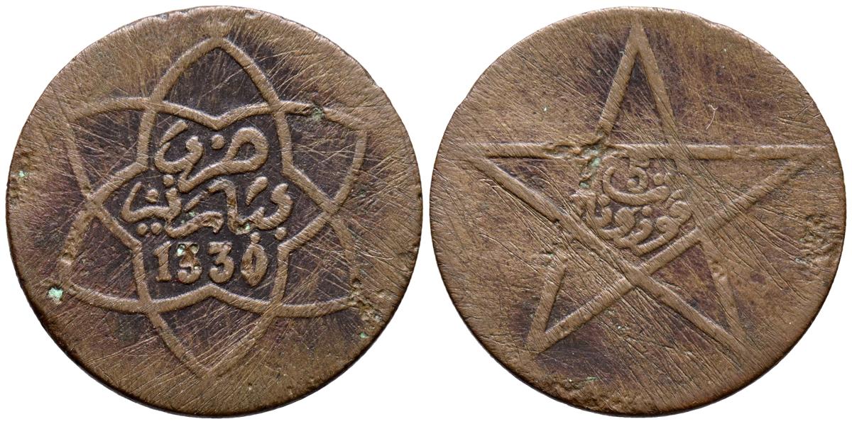MARRUECOS, Mulay Yussef l. Muzuna. (Ae. 4,50g/25mm). 1330H. París. (Girón 119). MBC.