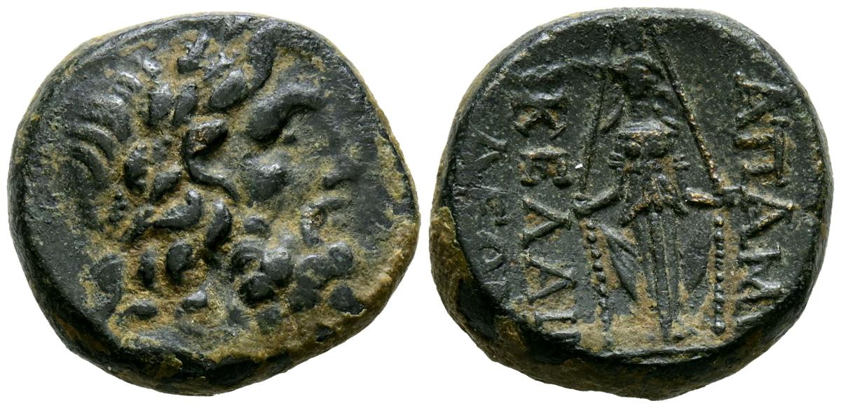 PHRYGIA, Apameia. Ae23. (Ae. 7,87g/20mm). 100-50 a.C. (SNG Copenhagen 177). Anv: Cabeza de Zeus a derecha. Rev: Artemides estante de frente. MBC.