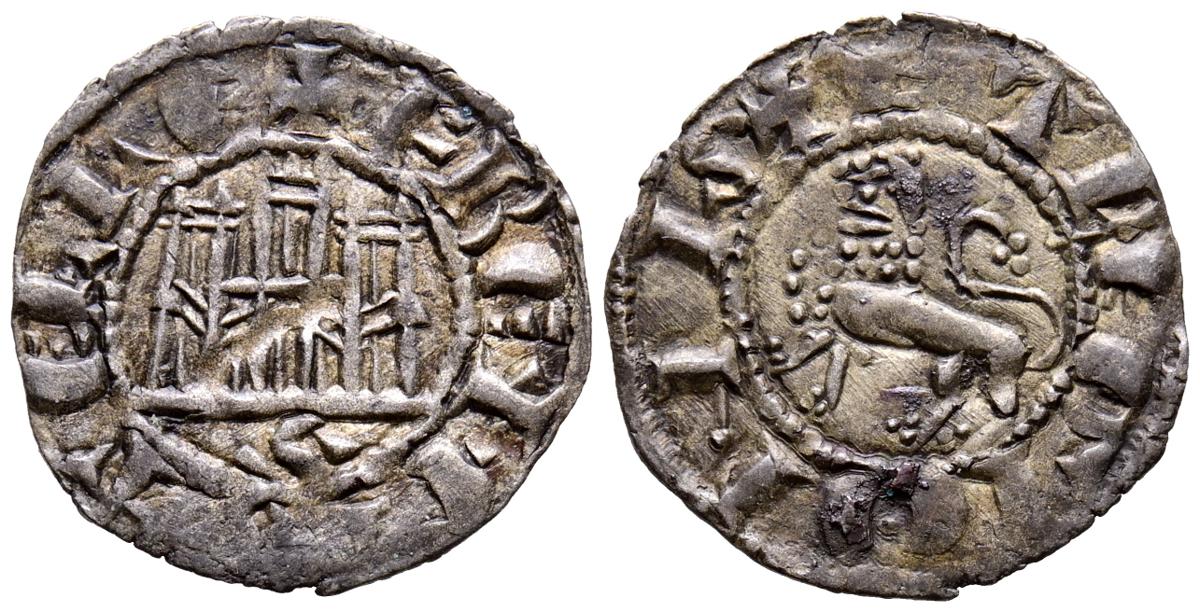 ALFONSO X (1252-1284). Pepión. (Ve. 0,76g/18mm). Sevilla. (FAB-254). Anv: Castillo dentro de gráfila, debajo S, alrededor leyenda: ALF REX CASTELLE. Rev: León rampante a izquierda dentro de gráfila, alrededor leyenda: ET LEGIONIS. MBC+.