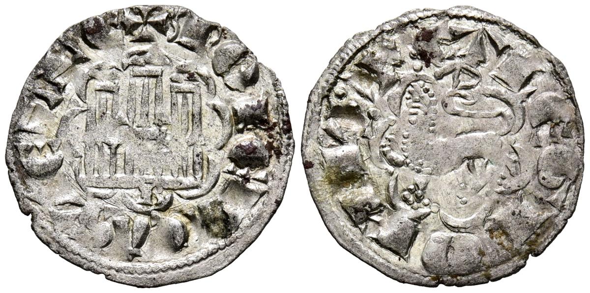 ALFONSO X (1252-1284). Noven. (Ve. 0,74g/18mm). Burgos. (FAB-263). Anv: Castillo y debajo B dentro de gráfila lobular, alrededor leyenda: MONETA CASTELLE. Rev: León rampante a izquierda dentro de gráfila lobular, alrededor leyenda: ET LEGIONIS. MBC.