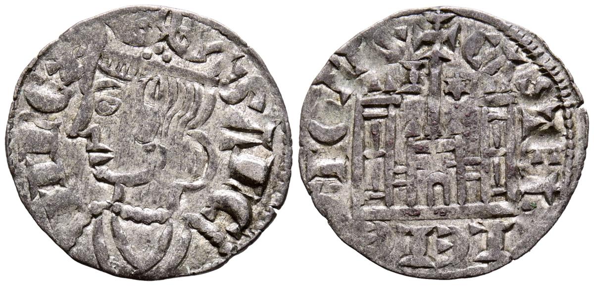 SANCHO IV (1284-1295). Cornado. (Ve. 0,77g/19mm). Burgos. (FAB-296). Anv: Busto coronado a izquierda, alrededor leyenda: SANCII REX. Rev: Castillo con cruz sobre vástago central y marca de ceca B y estrella, alrededor leyenda: CASTELLE E LEGIONIS. MBC.