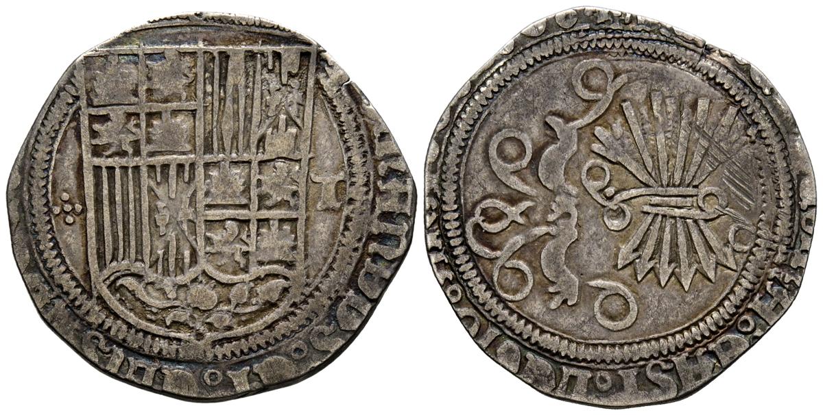 REYES CATÓLICOS (1474-1504). 1 Real. (Ar. 2,37g /24mm). Toledo. (Cal-2019-465). MBC. Algo recortada.