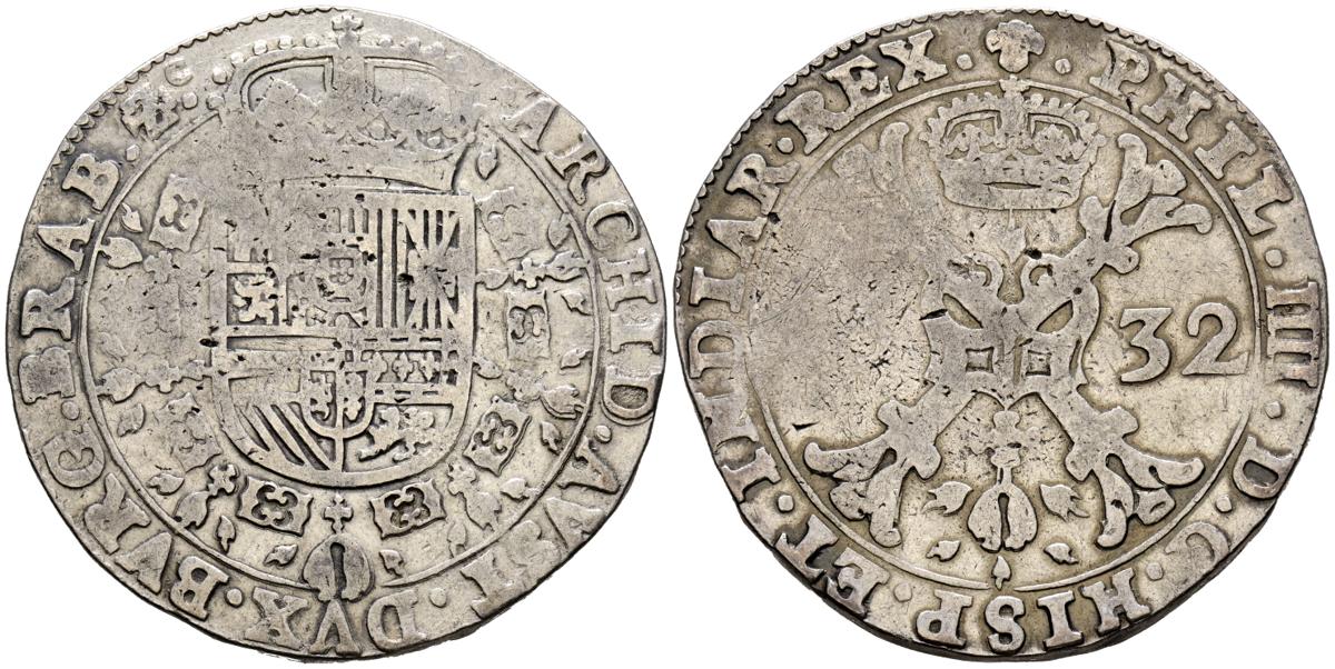 ALBERTO E ISABEL (1598-1621). 1 Patagón. (Ar. 27,61g/42mm). 1632. Bruselas. (Vicenti 1005). MBC.