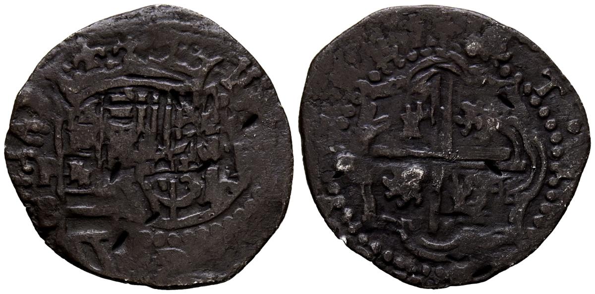 FELIPE II (1556-1598). 1 Real (Ar. 2,80g/23mm). S/D (1578-1595). Potosí B. (Cal-2019-242). BC+. Ceca y ensayador visibles. Pátina marrón.