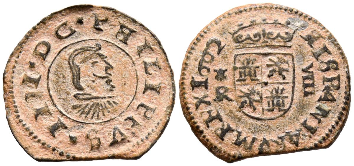 FELIPE IV (1621-1665). 8 Maravedís. (Ae. 2,39g/21mm). 1662. Coruña R. (Cal-2019-316). MBC. Final de riel