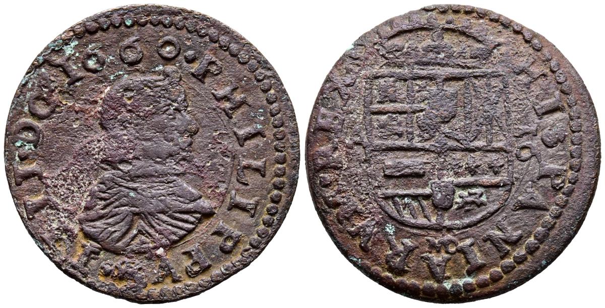 FELIPE IV (1621-1665) 16 Maravedís (Ae. 4,57g/25mm). 1660. Madrid A. (Cal-2019-465). Marca de ceca MD. BC+. Rara.