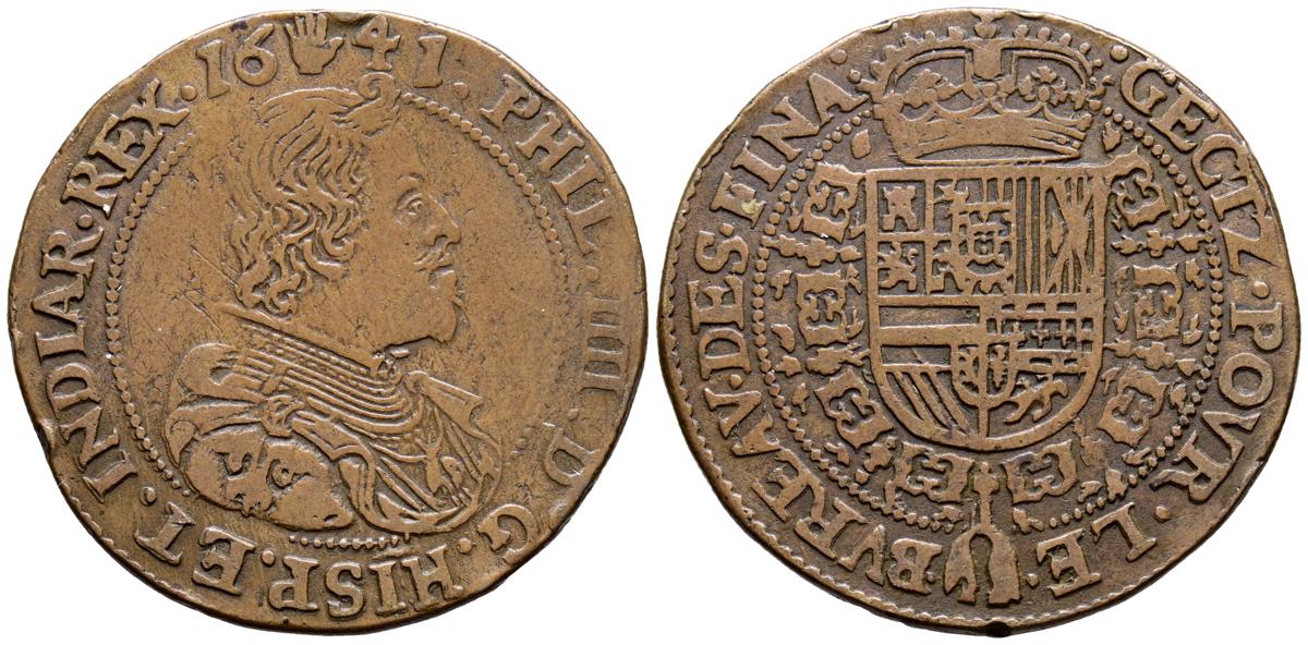 FELIPE IV (1621-1655). Jetón (Ae. 5,88g/30mm). 1641 .Amberes. Oficina de Fianzas. (Dugniolle 3959). MBC.