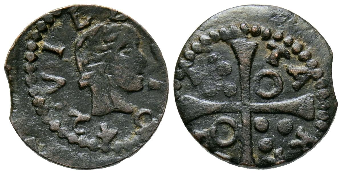 GUERRA DELS SEGADORS (1640-1652). 1 Diner. (Ae. 1,07g/14mm). 1642. Tárrega. (Cal-2019-233). Busto de Luis XIII a derecha. MBC+. Bonito ejemplar.