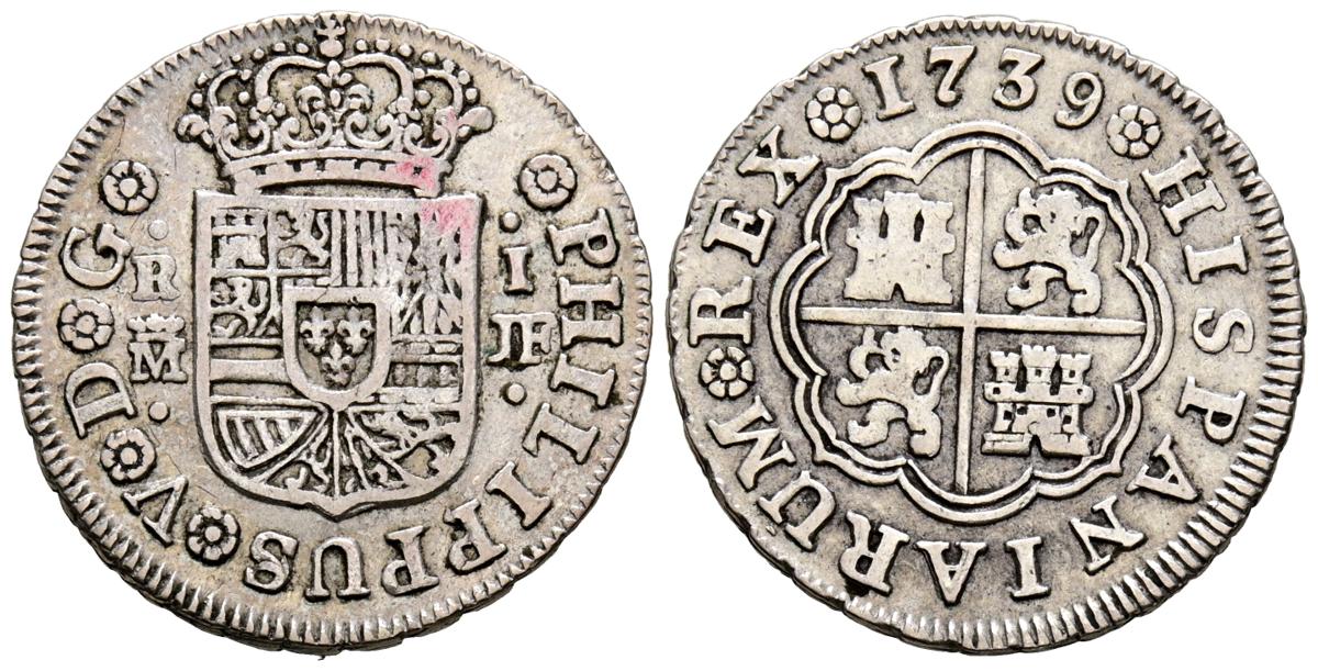 FELIPE V (1700-1746). 1 Real. (Ar. 3,02g/20mm). 1739. Madrid JF. (Cal-2019-455). MBC-.