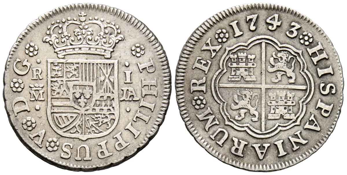 FELIPE V (1700-1746). 1 Real (Ar. 2,97g/20mm). 1743 Madrid JA. (Cal-2019-460). MBC.