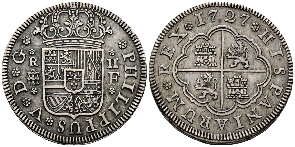 FELIPE V (1700-1746). 2 Reales (Ar. 5,83g/27mm). 1727. Segovia F. (Cal-2019-961). MBC+.