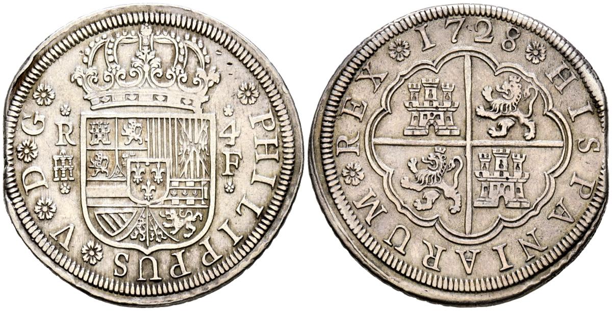 FELIPE V (1700-1746). 4 Reales. (Ar. 13,42g/35mm). 1728. Segovia F. (Cal-2019-1215). EBC-. Escasa y más en esta calidad.