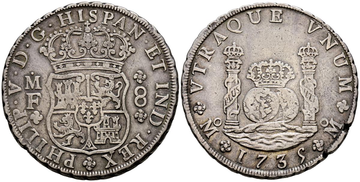 FELIPE V (1700-1746). 8 Reales. (Ar. 26,87g/38mm). 1735. Mexico MF. (Cal-2019-1443). MBC.