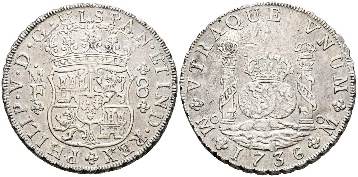 FELIPE V (1700-1746). 8 Reales. (Ar. 26,64g/39mm). 1736. México MF. (Cal-2019-1445). EBC-. Marquitas.