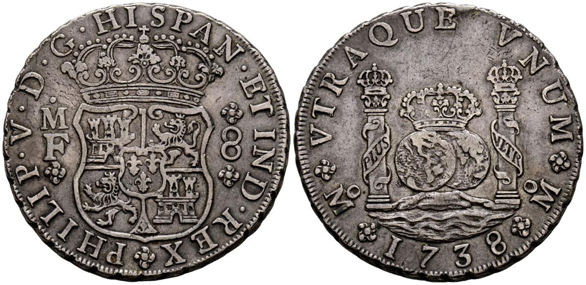 FELIPE V (1700-1746). 8 Reales. (Ar. 26,94g/39mm). 1738. Mexico MF. (Cal-2019-1449). MBC+.