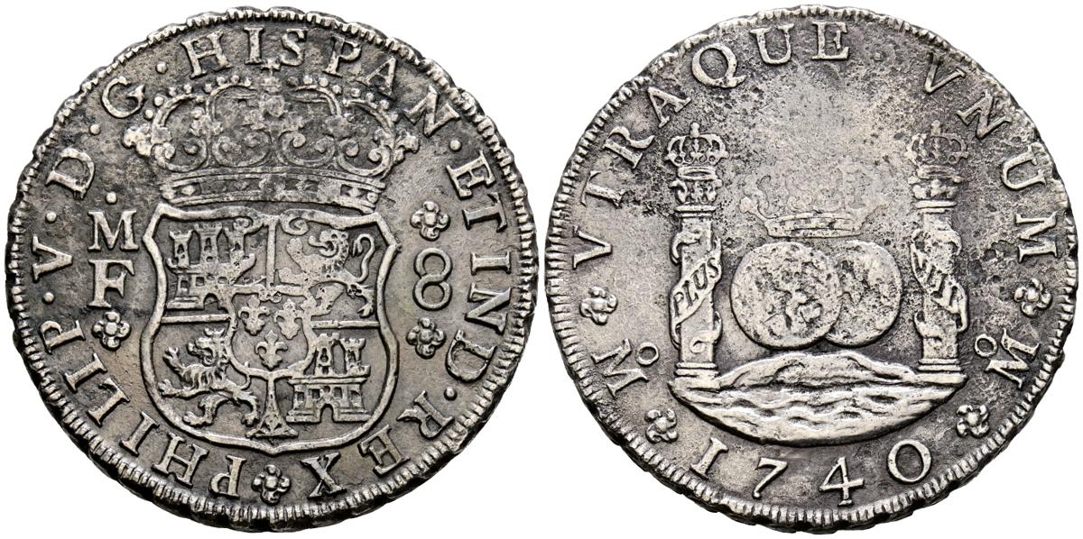 FELIPE V (1700-1746). 8 Reales. (Ar. 26,03g/39mm). 1740. Mexico MF. (Cal-2019-1456). MBC-. Oxidaciones.