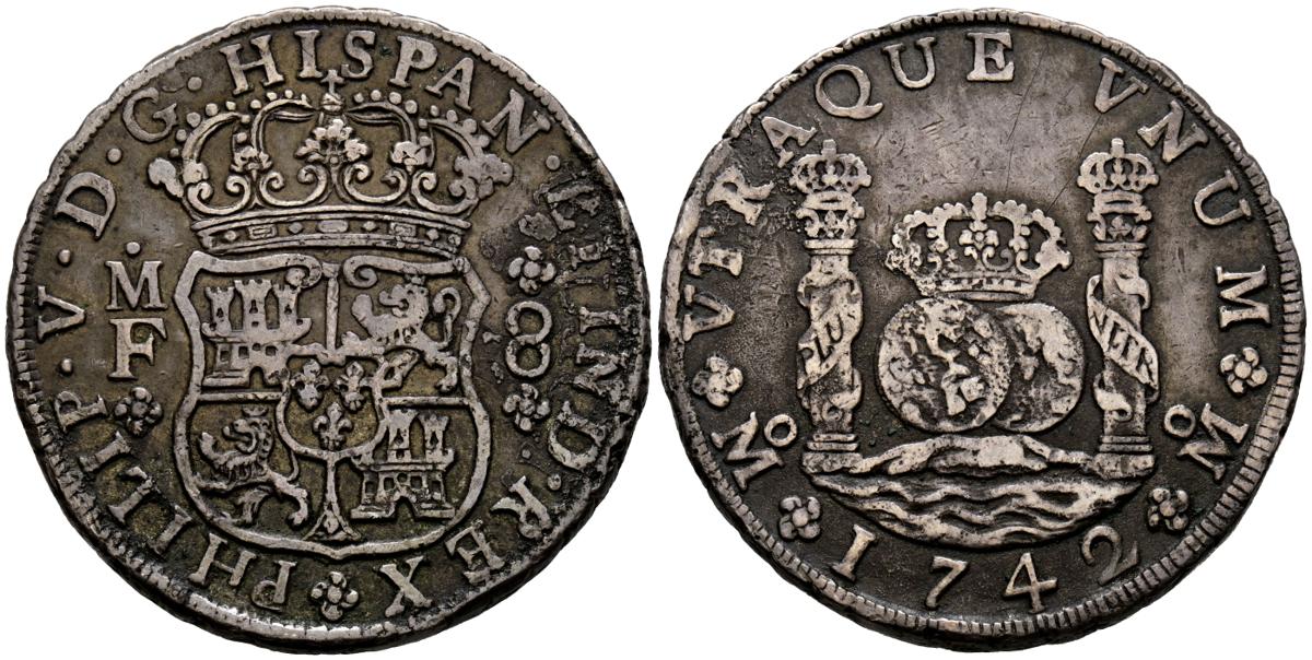 FELIPE V (1700-1746). 8 Reales. (Ar. 27,77g/39mm). 1742. Mexico MF. (Cal-2019-1461). MBC.