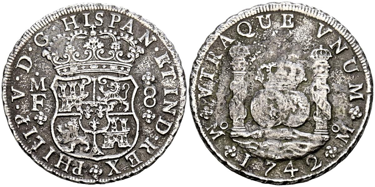 FELIPE V (1700-1746). 8 Reales (Ar. 23,77g/38mm). 1742. México MF. (Cal-2019-1461). RC. Importantes oxidaciones y limpieza posterior agresiva.