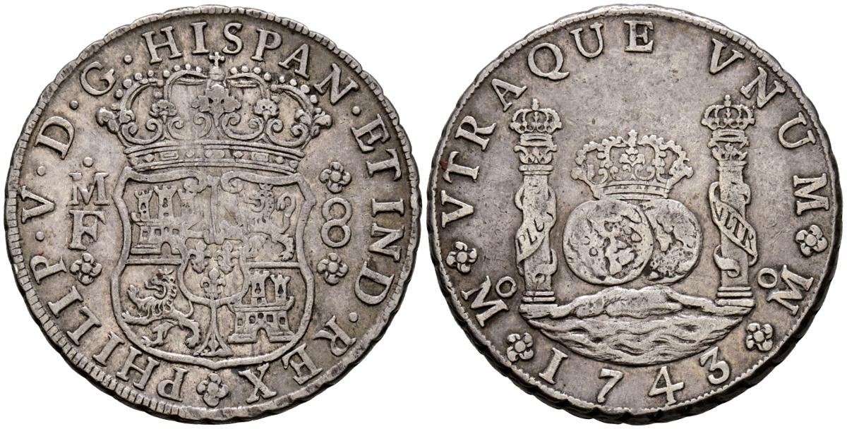 FELIPE V (1700-1746). 8 Reales. (Ar. 26,93g/38mm). 1743. Mexico MF. (Cal-2019-1463). MBC-.