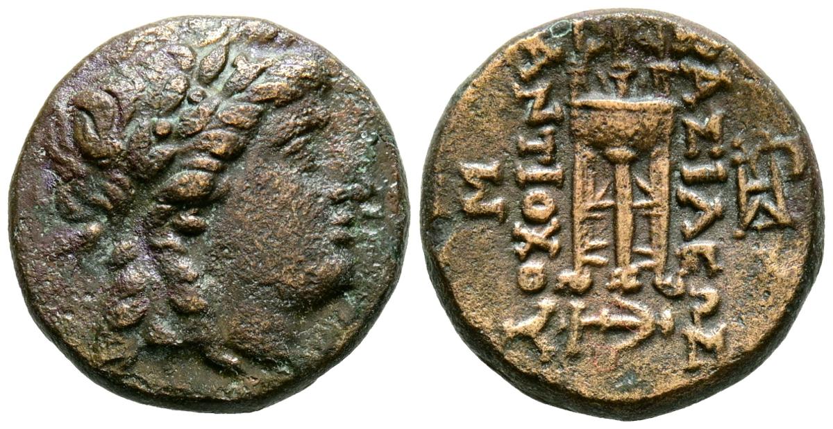 REINO SELEUCIDA, Antiocos II Theos. Ae16. (Ae. 4,29g/16mm). 261-246 a.C. Sardes. (SNG Spaer 360). Anv: Cabeza laureada de Apolo a derecha. Rev: Trípode, debajo ancla, alrededor leyenda griega. MBC.