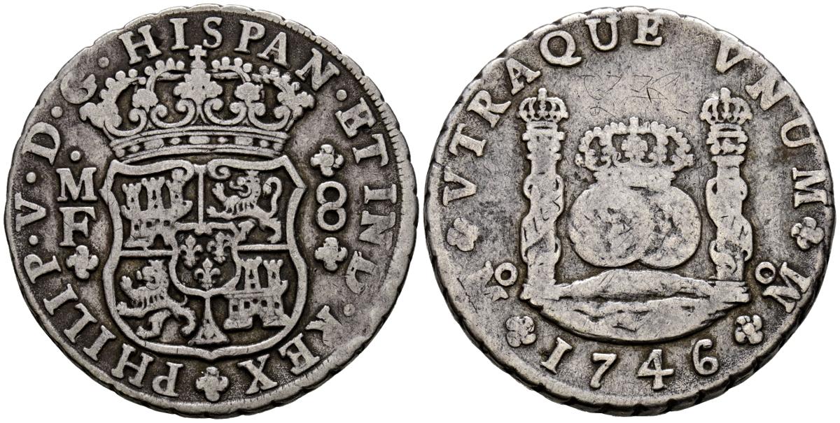 FELIPE V (1700-1746). 8 Reales. (Ar. 26,90g/39mm). 1746. Mexico MF. (Cal-2019-1470). MBC-.