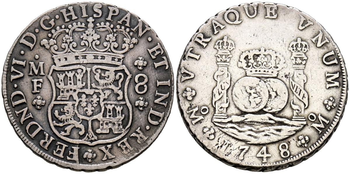 FERNANDO VI (1746-1759). 8 Reales (Ar. 26,81g/39mm). 1748. México MF. (Cal-2019-471). MBC-.