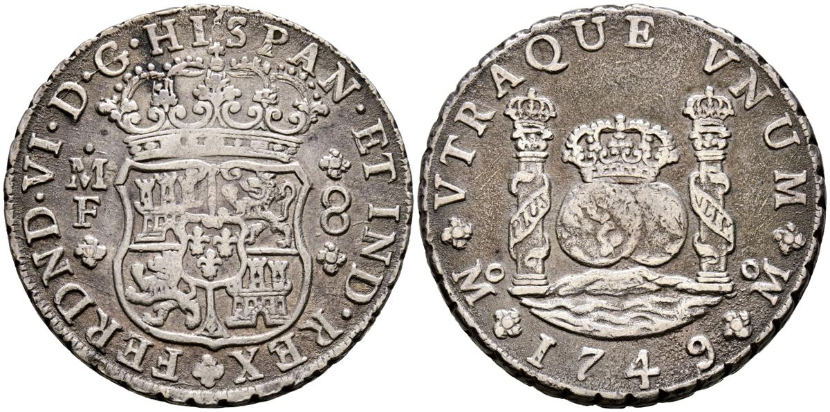 FERNANDO VI (1746-1759). 8 Reales (Ar. 26,89g/39mm). 1749. México MF. (Cal-2019-473). MBC-. Oxidaciones.