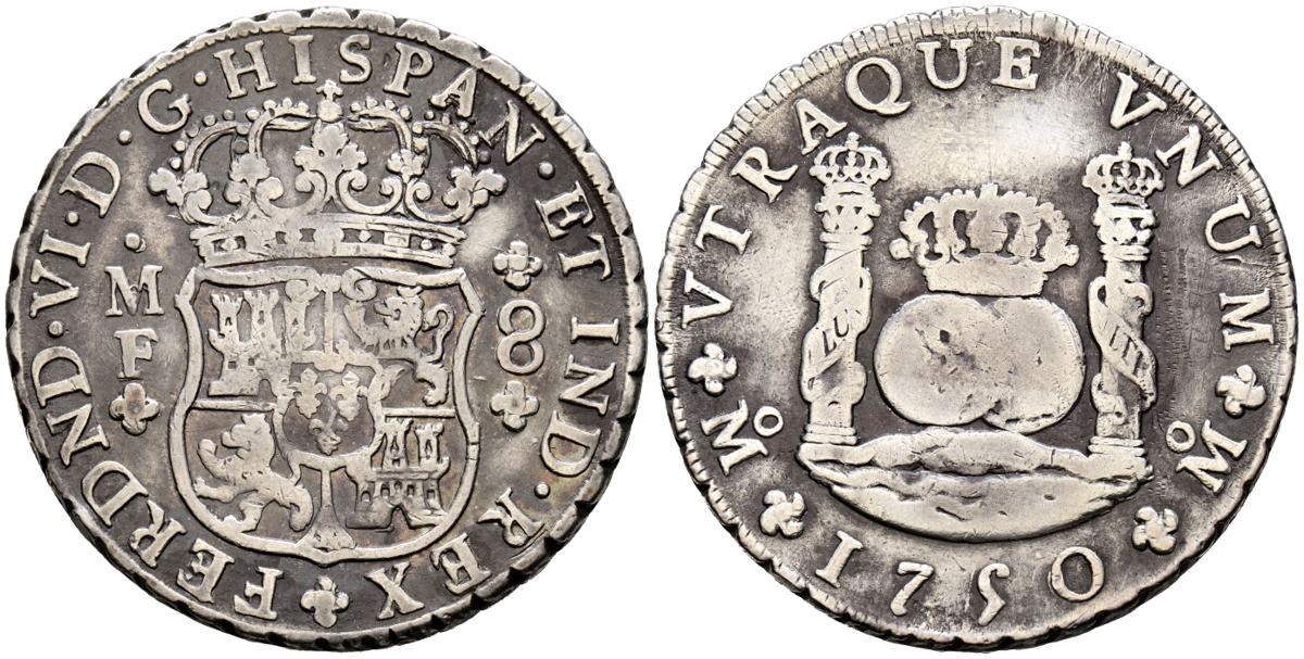 FERNANDO VI (1746-1759). 8 Reales (Ar. 26,65g/39mm). 1750. México MF. (Cal-2019-474). MBC-/BC+.