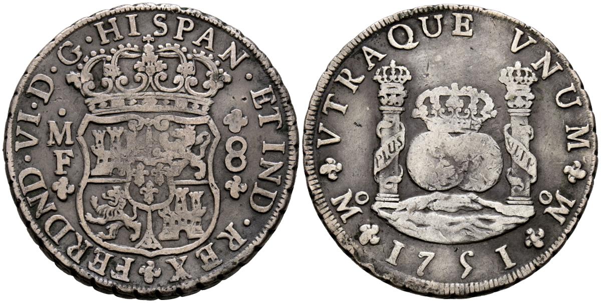 FERNANDO VI (1746-1759). 8 Reales (Ar. 26,58g/39mm). 1751. México MF. (Cal-2019-475). MBC-.