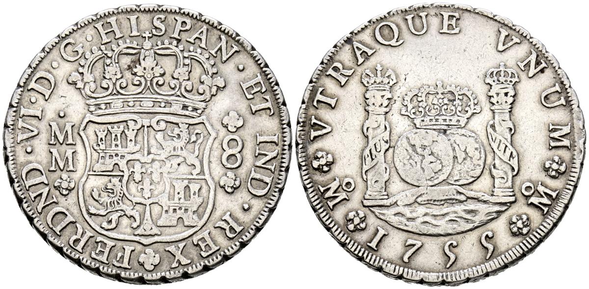 FERNANDO VI (1746-1759). 8 Reales. (Ar. 27,01g/39mm). 1755. México MM. (Cal-2019-489). MBC.