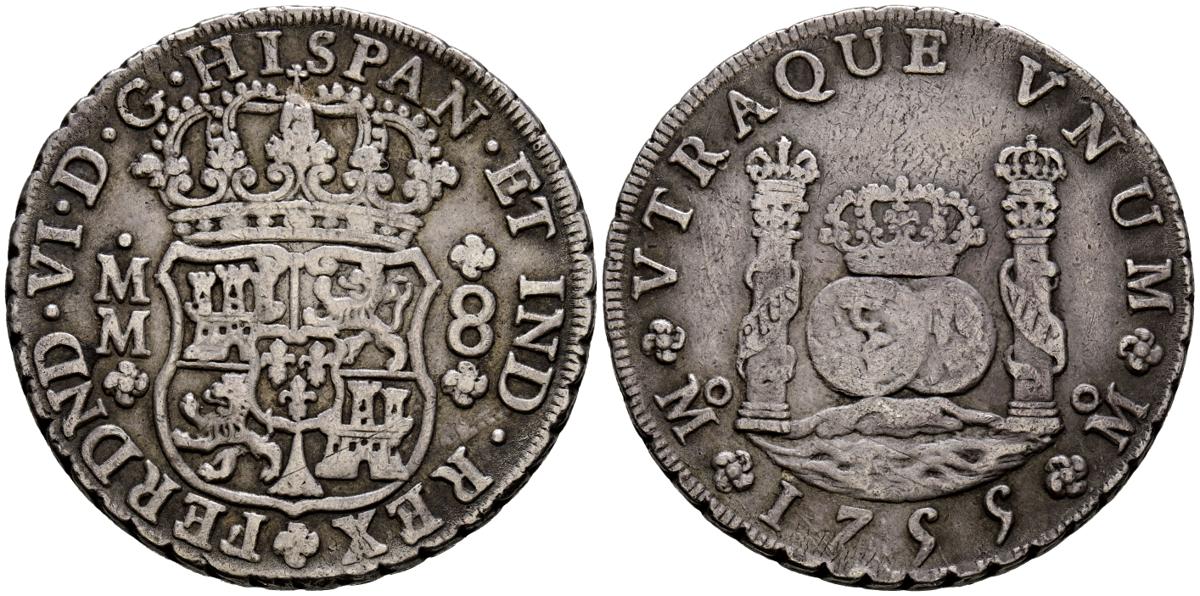 FERNANDO VI (1746-1759). 8 Reales (Ar. 27,00g/40mm). 1755. México MM. (Cal-2019-489). MBC.