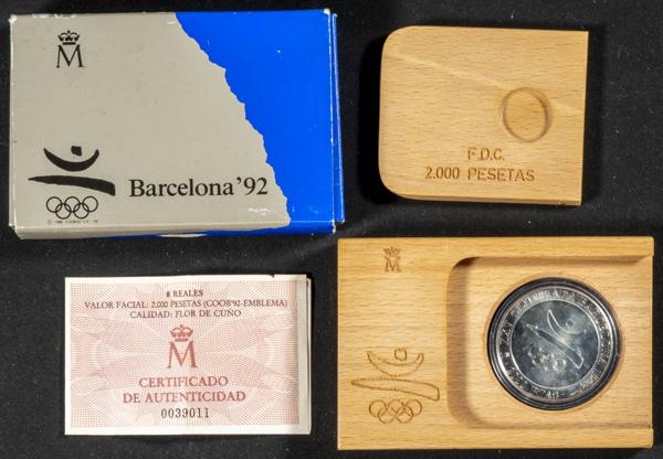 JUAN CARLOS I (1975-2014). 2000 Pesetas. (Ar. 27,00g/40mm). Serie Barcelona 92. Emblema Oficial. 1990. FNMT. FDC. Incluye estuche original y certificado de autenticidad.