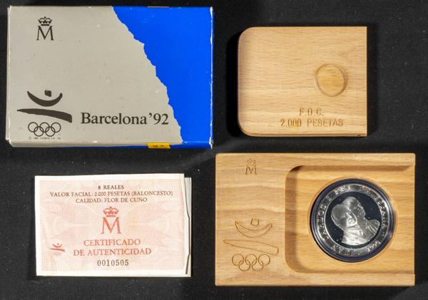 JUAN CARLOS I (1975-2014). 2000 Pesetas. (Ar. 27,00g/40mm). Serie Barcelona 92. Baloncento. 1991. FNMT. FDC. Incluye estuche original y certificado de autenticidad.