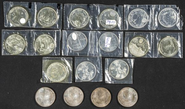 JUAN CARLOS I (1975-2014). Conjunto de 19 monedas conmemorativas de plata (15 de 2000 Pesetas y 4 de 12€) con una gran variedad de fechas y tipología. Diferentes estados de conservación. Muchas de ellas aún en su plástico original. A EXAMINAR.