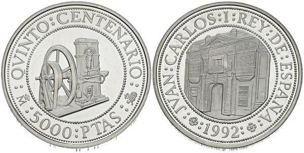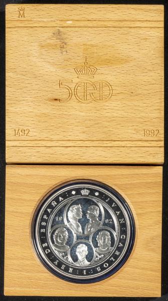 JUAN CARLOS I (1975-2014). 5000 Pesetas. (Ar. 53,84g/40mm). Serie Quinto Centenario. Serie VI. 1992. FNMT. Ceca de Sevilla. PROOF.