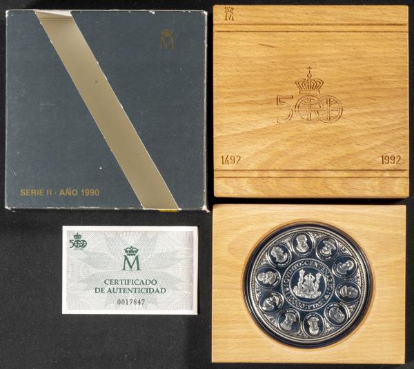 JUAN CARLOS I (1975-2014). 10.000 Pesetas. (Ar. 168,75g /73mm). V Centenario. 1990. Serie II. FNMT. FDC. Presentado en estuche oficial y con certificado de autenticidad. 40 mil unidades emitidas.